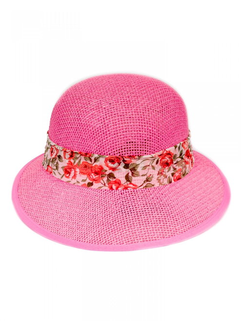 (12696)Damen NEUHEIT! Damen Strohhut in puderrosa Farbe mit einer bunten Kette. Die Farbe der Kette kann leicht variieren.