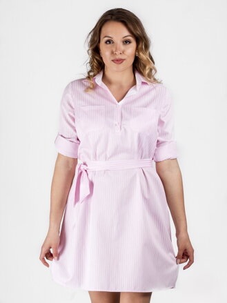 (8280)Schwarzes knielanges Polokleid, ergänzt durch eine schöne frische rosa Farbe. Das Polokleid besteht aus einem Material mit einem hohen Anteil an Baumwolle, dank dem Sie sich den ganzen Tag wohl fühlen werden.