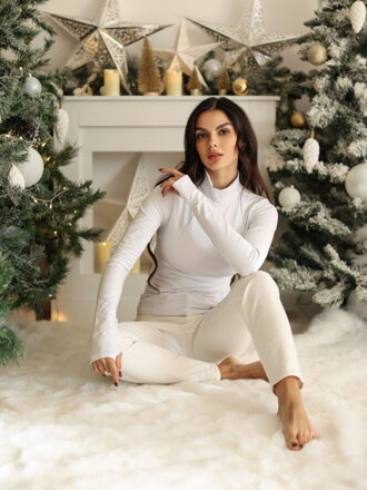 (16572)Weicher Damen-Rollkragenpullover in schneeweißer Farbe. Hergestellt aus hochwertigem Material, das Sie lieben werden. Der Rollkragenpullover hat lange Ärmel und ist mit einem Daumenausschnitt etwas Besonderes.