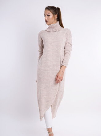 (17711)Dámsky oversize sveter ISABELL cappuccino – hrubý pletený úplet, široké rukávy, rolák a moderná oversize dĺžka vhodná ako sveter aj pletené šaty. Trendový hrejivý sveter v neutrálnej cappuccino farbe na jeseň a zimu.