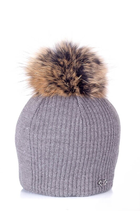 Frauen Strickmütze mit Bommel aus echtem Pelz Zuza- grau