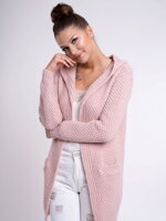 Wunderschöne Strickjacke in altrosa Farbe mit Kapuze. Die Strickjacke ist aus bequemem und angenehmem Material gefertigt. Reicht fast bis zum Knien und hat lange Ärmeln. In Hüftenbereich gibt es zwei klasiche Seitentaschen. Dieses Modell eignet sich im Winter als längerer Pullover unter den Mantel oder auch im Sommer als begleiter beim Abend-spatziergang.