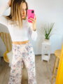 Lockere, stilvolle Hosen Leslye mit Muster. Sie sind bequem, elegant und können gleichzeitig mit Turnschuhen Wunder wirken. Ergänzen Sie sie mit einem klassischen weißen TOP, den Sie ebenfalls in unserem Angebot finden, und kreieren Sie ein perfektes Sommer-Outfit einzigartig mit VERSABE.