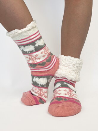 Dámske vlnené ponožky v ružovej farbe s dizajnom ovečky sú neodmysliteľnou súčasťou vášho zimného šatníka. Tieto ponožky vás zahrejú počas chladných dní.