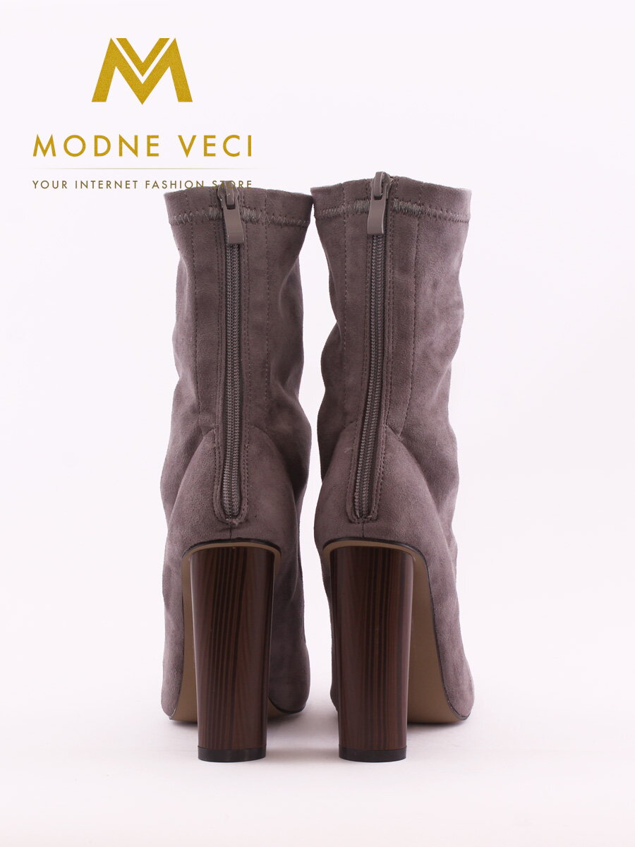 Kozak-ähnliche Stiefeletten für Frühling oder Herbst. Veloursleder-Optik und stilvoller hoher Absatz. Die Schuhe sitzen trotz des hohen Absatzes bequem am Fuß. Sie sind bequem und vielseitig kombinierbar.